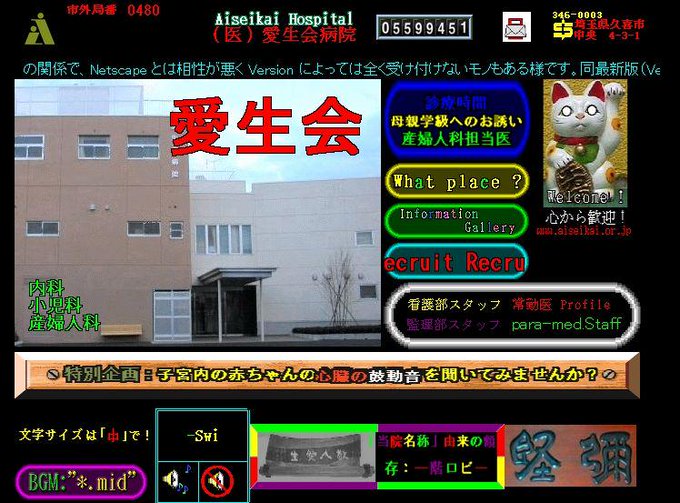 伝説的なweb黎明期のサイト 愛生会病院 をウェイバックマシンで見る