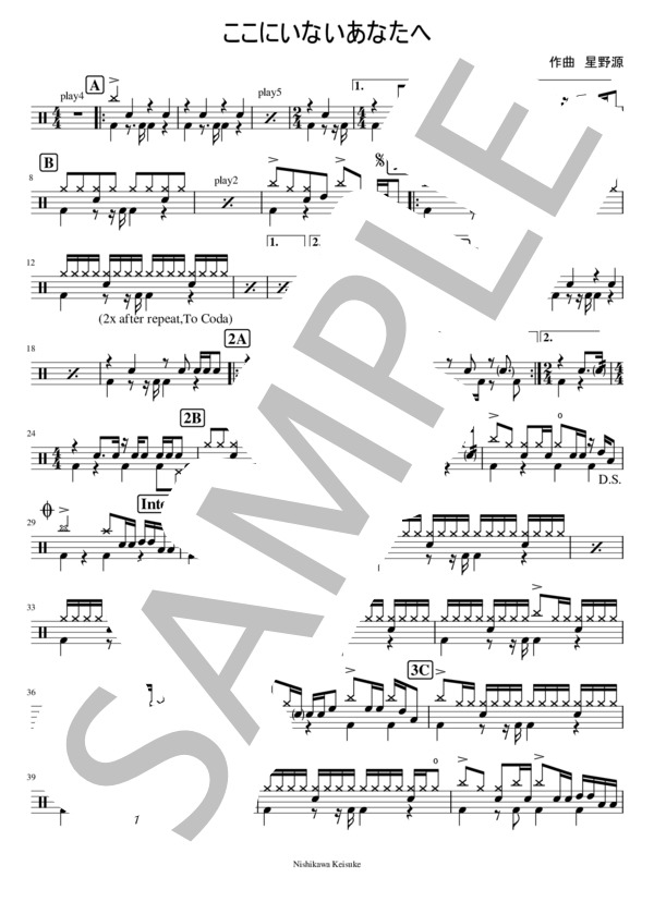 ここにいないあなたへ 星野 源 ドラム 初 中級 2ページ以内に