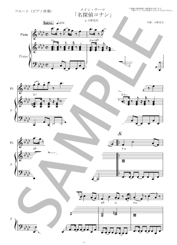 フルート楽譜 名探偵コナン メインテーマ 大野克夫 フルート
