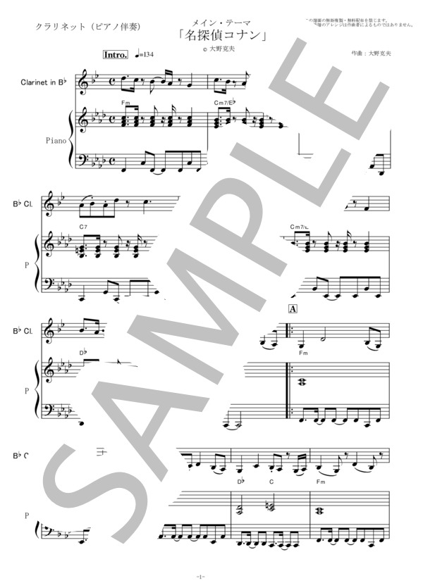 クラリネット楽譜 名探偵コナン メインテーマ 大野克夫