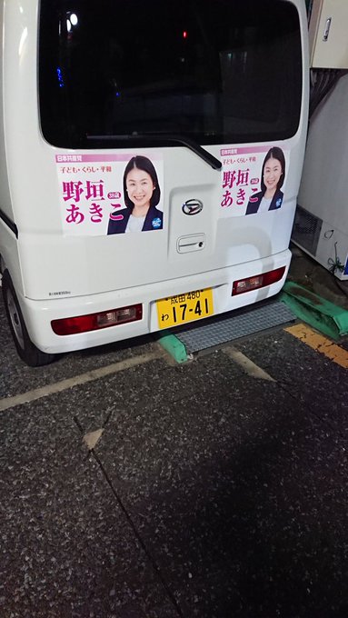 駐車場騒動の共産党 野垣あきこ氏 みなさんのご支持をいただき 杉並