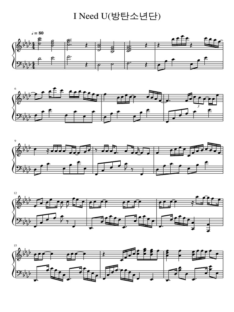I Need U Bts Piano Music Sheet Download Topmusicsheet Com